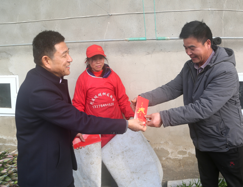 王信學一行首先來到包莊派出所,現場觀看新派出所駐地環境、訓練室等,詳細了解新建派出所駐地情況,對過去一年全體公安干警的辛勤付出表示感謝,并送上新春祝福。在富民科技園溫室內,工人們正在忙著采摘鮮花上市,今年鮮切花行情較好,百合花供不應求,為滿著市場供應,富民科技園工人放棄春節假日,忙著采摘百合供應市場,王信學現場參觀了鮮花生產情況,與堅守在一線的的工人親切握手并送上紅包,感謝他們付出的辛勤勞動。隨后,王信學來到農場社區,詳細詢問春節期間環境衛生和疫情防控工作,鼓勵社區干部職工加強節日值守,統籌做好環衛和疫情防控工作。在供電中心和自來水廠,王信學要求大家盡好職、履好責、服好務,保障好千家萬戶節日期間的用水用電,對春節期間堅守一線的職工表示感謝,同時對供電供水工作作了相關要求。
