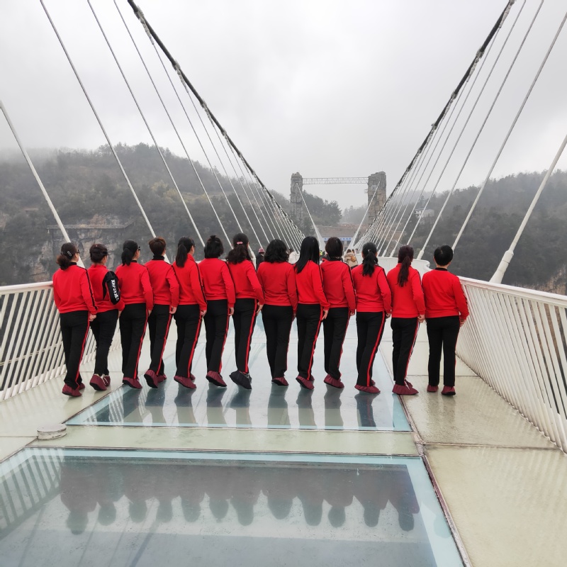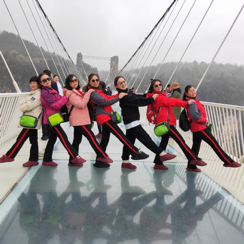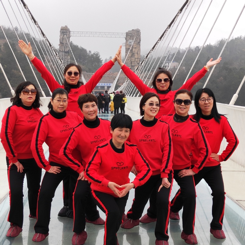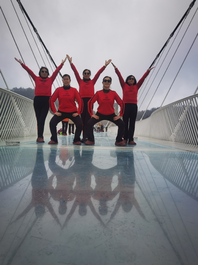 3月9日,三八國際婦女節過后第一天,此時也正是廣大婦女朋友們展示才藝的大好時節。我們借助網絡平臺注意到,在張家界大峽谷玻璃橋上,來自淮海農場的一群身穿紅色運動服的婦女們,利用渾身上下展示出來的氣質,借助祖國大好的自然風光平臺,通過編排整齊劃一的舞姿與自然風光相結合的方式,既讓大家展示出了青春年華的亮麗色彩,也保留住了景區的旅游風光。這些有著特定含義的照片和短視頻借助抖音、朋友圈等平臺,立刻展示在農場人的手機中,贏得了社會各界的紛紛點贊和留言。