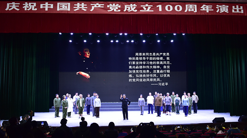 周恩來,這是一個光榮的名字、不朽的名字。周恩來同志是近代以來中華民族的一顆璀璨巨星,是中國共產(chǎn)黨人的一面不朽旗幟。作為淮安市委慶祝中國共產(chǎn)黨成立100周年獻(xiàn)禮作品之一,該劇以習(xí)近平總書記提出的不忘初心、堅守信仰,對黨忠誠、維護(hù)大局,熱愛人民、勤政為民,自我革命、永遠(yuǎn)奮斗,勇于擔(dān)當(dāng)、鞠躬盡瘁,嚴(yán)于律己、清正廉潔這六個杰出楷模為主線,擷取了黃河搶險、送侄回鄉(xiāng)、故鄉(xiāng)行、一件珍貴的襯衫、顧全大局、西花廳不滅的燈光、最后的歲月等七個篇章,以藝術(shù)的手法還原或再現(xiàn)了周恩來作為中國共產(chǎn)黨人杰出楷模,在為中國人民謀幸福、為中華民族謀復(fù)興、為人類進(jìn)步事業(yè)而奮斗的光輝一生中的一些典型情景,再現(xiàn)和展示了周恩來這一偉岸的精神豐碑,塑造和彰顯了一名優(yōu)秀中國共產(chǎn)黨人的光輝形象,使大家深受感染并深愛感動。紛紛表示要深入學(xué)習(xí)周恩來對理想信念堅定執(zhí)著、對黨的事業(yè)忠貞不渝、對革命工作高度負(fù)責(zé)、對人民群眾情懷至深、對自我修養(yǎng)嚴(yán)格要求的精神風(fēng)范,始終做到不忘初心、堅守信仰,牢記手中的權(quán)力是黨和人民賦予的,是用來為人民服務(wù)的,一身正氣、兩袖清風(fēng),敬畏人民、敬畏組織、敬畏法紀(jì),更好地加強自身建設(shè),做一個堂堂正正的共產(chǎn)黨人,用實際行動在新時代新征程上作出各自應(yīng)有的貢獻(xiàn)。