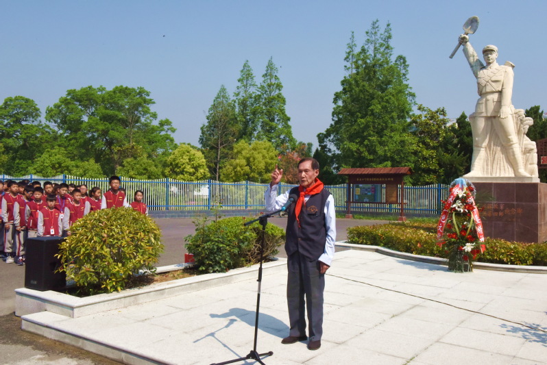 “我們給學生們就是要多講講過去黨的歷史,多說說農場的建場史,讓他們在實境教育和感悟中,提升思想境界,從而接過淮海人的接力棒,一棒一棒向下傳,確保農場的事業后繼有人。”胡福生表示。圖為胡福生老人在給學生們講傳統時的鏡頭。
