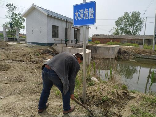也正是由于金壽祥的及時管理,多年來這地段的水泥道路一直處在完好狀態,行人走過總要個金壽祥豎起大拇指點一個贊,而他總是笑著說,小事一樁,都是我應該做的。(圖為金壽祥正在路邊填土埋警示標志。)