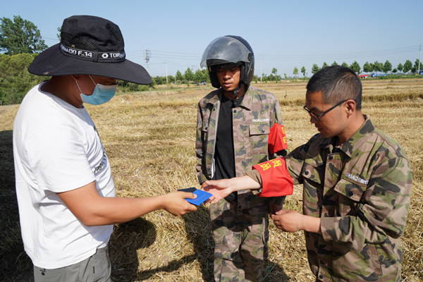今年的三夏如火如荼,高溫使得麥子的搶收時(shí)間緊迫,黨員們活躍在三夏的場(chǎng)景遍布田間地頭、場(chǎng)頭。農(nóng)機(jī)站秦孝輝是今年第一個(gè)佩戴黨徽走進(jìn)三夏一線(xiàn)的共產(chǎn)黨員,在田間,我們見(jiàn)到他時(shí)正在檢查收割質(zhì)量,生產(chǎn)區(qū)技術(shù)員告訴我,秦主任為了確保收割質(zhì)量達(dá)標(biāo),用手扒開(kāi)麥秸一粒粒的數(shù),手被秸稈刺出一道道紅血印。他說(shuō),我之所以佩戴黨徽上崗就是要告訴大家,我是一名共產(chǎn)黨員,讓大家遇到問(wèn)題時(shí)好知道找誰(shuí),黨徽就是黨員標(biāo)志,三夏中,我們不僅要發(fā)揮先鋒模范和帶頭作用,更要接受大家的監(jiān)督。
