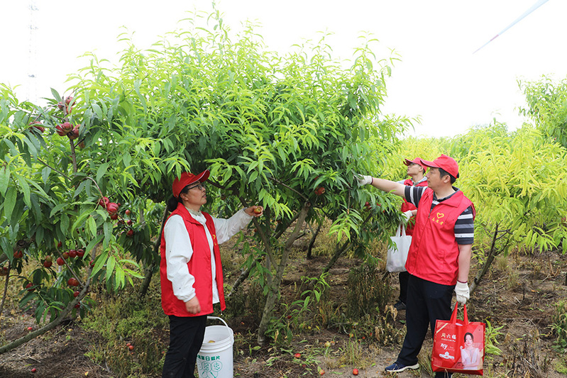 “今天來這里幫綠農(nóng)園公司摘桃子,我們就是要將學(xué)黨史、辦實事落實到實際行動上。”“通過參加志愿活動,為企業(yè)發(fā)展出點力。”黨員志愿者們說。