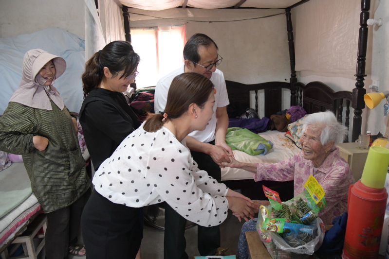 在端午節(jié)來臨之際,為讓百歲老人過上一個快樂詳和的傳統(tǒng)佳節(jié),6月11日下午,淮海農場有限公司工會與社區(qū)民政負責人一起,帶著粽子、大米、葵花籽油等生活用品,分別慰問了今年已有102歲的張瑞瑞和邱維珍老人,并向她們致以節(jié)日的問候。