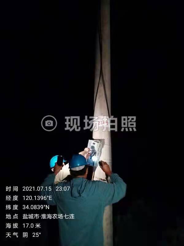 11點10分,凱惠電力職工在暴風(fēng)暴雨下?lián)尫?/span>電桿2個多小時的突擊行動和連續(xù)奮戰(zhàn),傾斜的電桿被易位“扶正”,曹祥再一次奔赴分路開關(guān)進行合閘送電。