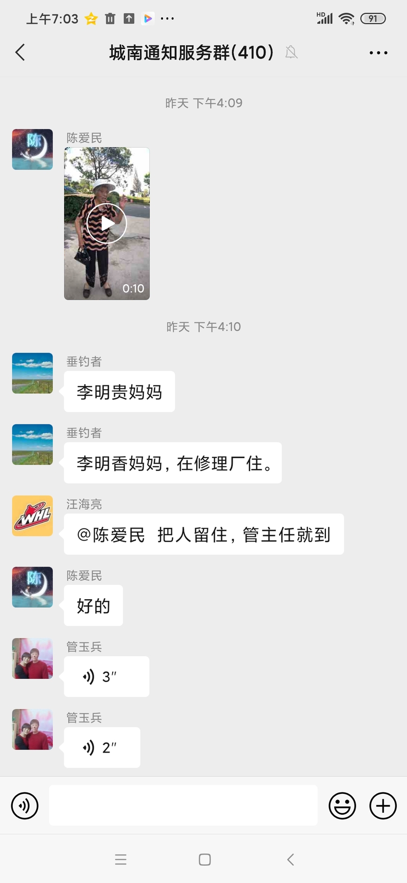 視頻剛一上傳,一名網(wǎng)名叫垂釣者的網(wǎng)友便立即回復(fù),這是李某某的媽媽,在修理廠住。農(nóng)場(chǎng)聯(lián)防隊(duì)員汪海亮則第一時(shí)間把發(fā)生的事情電話告訴城南居委會(huì)主任管玉兵,并隨即@報(bào)料人,請(qǐng)把人留住,城南社區(qū)管主任馬上就到。
