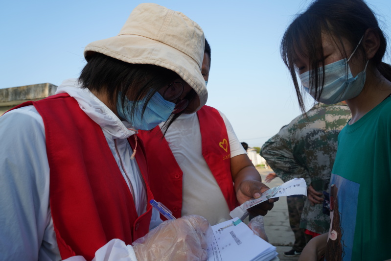 孫川頁(yè)是盱眙桂伍鎮(zhèn)山洪村主任、黨支部書(shū)記,疫情發(fā)生后,由于是嫁到農(nóng)場(chǎng),不能到單位上班滯留在了三河,在向農(nóng)場(chǎng)捐贈(zèng)了酒精、免洗消毒凝膠和100包口罩后,當(dāng)她得知農(nóng)場(chǎng)要進(jìn)行全員核酸檢測(cè)的消息,便主動(dòng)請(qǐng)求到檢測(cè)點(diǎn)做志愿服務(wù),在保鮮庫(kù)核酸檢測(cè)點(diǎn)我們看到了孫川頁(yè),她身穿紅色志愿者馬夾,與志愿者們一起登記填寫(xiě)信息,維持現(xiàn)場(chǎng)秩序等,作為三河人的家屬,她把三河當(dāng)家,全身心的投入到核酸檢測(cè)的各項(xiàng)服務(wù)工作,一直到核酸檢測(cè)工作全部完成。