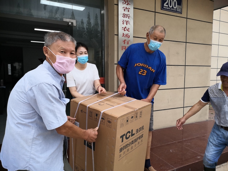 一家家、一戶戶陸續(xù)來到社區(qū)簽字領取家電。殘疾人陳雪芬父親接過微波爐、電飯煲感動地說:“感謝農場、感謝社區(qū)幫我們爭取的免費家電。”陳自力從小智力重殘,母親雙腿行動不便,家庭困難,陳自力的爺爺雙手扶著洗衣機感動地說:“現(xiàn)在黨的政策好,農場領導也好,我們全家感謝社區(qū)、感謝你們”。
