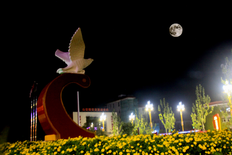 入夜,新洋人或是親友團(tuán)聚臨窗而坐,或是早早地匯聚在廣場(chǎng)歡快地跳起了廣場(chǎng)舞,或是三五成群悠閑地散步……他們都在靜靜地等待,等待圓月的升起。