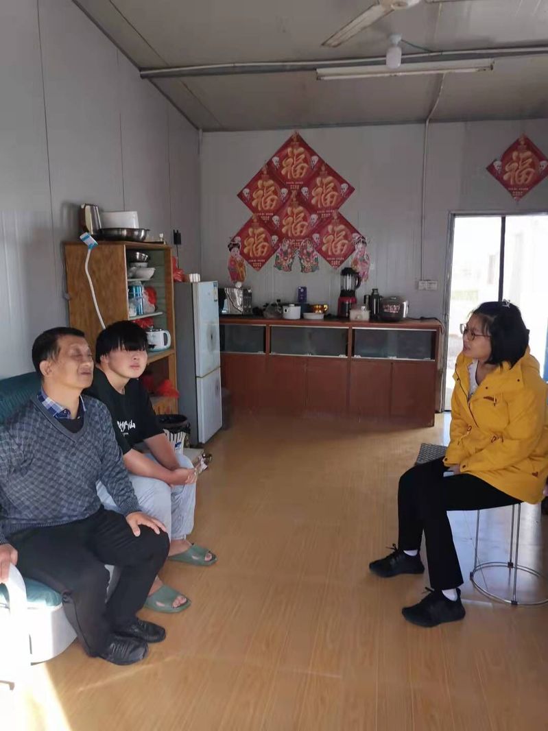 她出月子后,于10月17日帶著慰問金、大米、食用油等和李書記一起來到虞道虎家探望。通過深入交流了解到,他媽媽是外地人,在他4歲的時候拋下他就再也沒有回來,他爸爸身體殘疾又患有糖尿病伴隨著并發(fā)癥,致使視力嚴重下降模糊看不清,原先還能靠開三輪車帶乘客掙點微薄的生活費,現(xiàn)如今也只能作罷,面對如此不堪重負的家庭生活和上學的雙重壓力,家庭收入幾乎為零,經(jīng)過村、鎮(zhèn)的申請,縣政府相關部門的審批,最終他爸爸獲得了殘疾補貼和民政低保收入,家庭全部收入也僅限于此。“黨員媽媽”王靖與虞道虎的交談中,得知他本人對未來很有想法,目前就讀于揚州技師學院,五年制大專,數(shù)控專業(yè),他計劃好好學習順利畢業(yè)后將專轉(zhuǎn)本,繼續(xù)學歷深造以便日后好去蘇南就業(yè),考慮蘇南相對高工資可以為窮困的家庭和年邁的父親減輕壓力。聽此,王靖很欣慰,勸導父親和虞道虎,困難是有,但是暫時的,只要虞道虎肯努力學習,保持積極樂觀的心態(tài),未來一定可期。