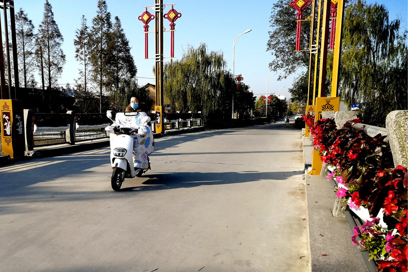 圖為中心河大橋欄桿上用鮮花裝點(diǎn)