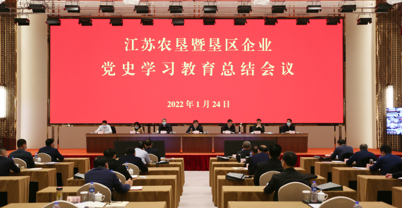 1月24日,江蘇農墾暨墾區(qū)企業(yè)黨史學習教育總結會議在寧召開。會議深入學習貫徹習近平總書記重要論述重要指示和中央、全省、省國資委暨省屬企業(yè)黨史學習教育總結會議精神,全面總結墾區(qū)黨史學習教育取得的成效經驗,對鞏固拓展黨史學習教育成果進行部署安排。集團公司黨委書記、董事長魏紅軍出席會議并講話,他強調,要堅決貫徹落實習近平總書記關于黨史學習教育的重要指示和中央、省委決策部署,深入學習貫徹黨的十九屆六中全會、省第十四次黨代會精神,不斷鞏固拓展黨史學習教育成果,奮力譜寫“強富美高”新江蘇現代化建設的農墾篇章,以奮進新征程、建功新時代的優(yōu)異成績迎接黨的二十大勝利召開。集團公司黨委副書記、總經理胡兆輝主持會議,黨委副書記姚準明傳達中央、全省、省國資委暨省屬企業(yè)黨史學習教育總結會議精神,黨委委員、副總經理姜建友,黨委委員、總會計師劉克英,黨委委員、紀委書記李旭東,黨委委員、副總經理王立新出席會議。