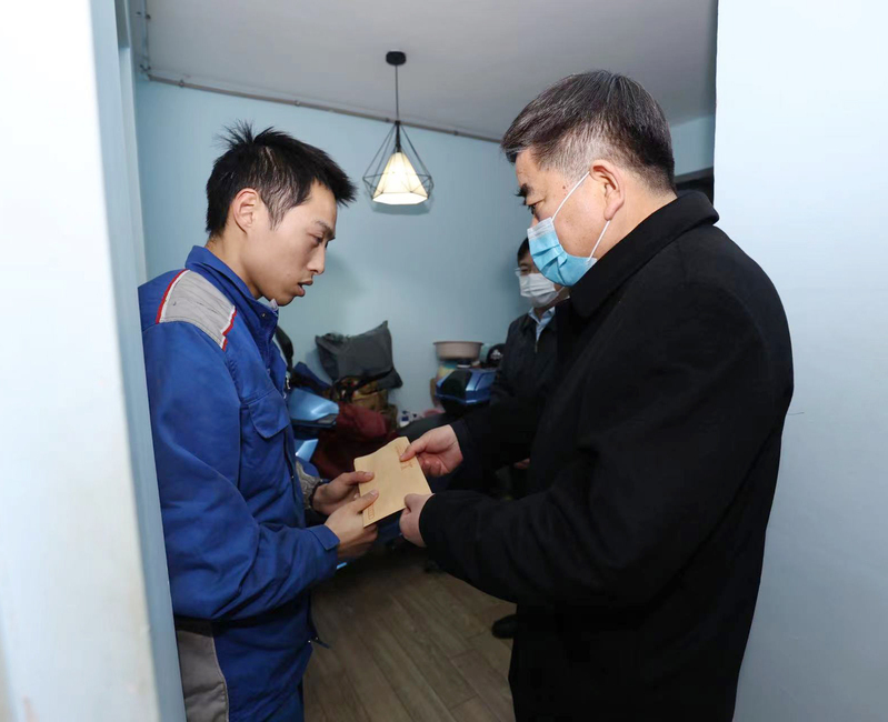 在困難職工張新輝的出租房中,魏紅軍詳細(xì)詢問了他手術(shù)后的身體狀況和工作生活情況,在聽聞張新輝家庭收入微薄、自身還要負(fù)擔(dān)妹妹的學(xué)費(fèi)時(shí),對其勇?lián)彝ヘ?zé)任表示肯定,叮囑蘇舜公司要繼續(xù)做好幫扶工作,將企業(yè)的關(guān)懷和溫暖送到困難職工的心坎上。隨后,魏紅軍來到蘇舜公司,慰問了一位替父治病已負(fù)債百萬的困難職工陶鋮康,在仔細(xì)詢問其父病情和家庭收入后,表示組織上將會持續(xù)關(guān)心,鼓勵(lì)他積極樂觀面對生活,增強(qiáng)戰(zhàn)勝困難的勇氣和信心。