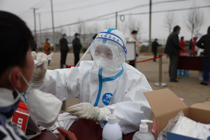 3月10日早上9點左右, 在崗埠農(nóng)科所核酸檢測點,崗埠醫(yī)院的醫(yī)護(hù)人員刁靜靜累得趴在工作臺上,出現(xiàn)了頭暈、嘔吐現(xiàn)象,可她還堅持在工作崗位,在同事和領(lǐng)導(dǎo)的關(guān)心和勸說下,她才不舍地離開工作崗位。