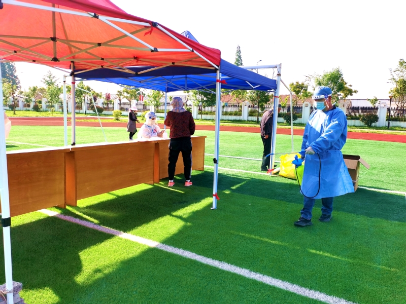 我在崗,您省心。“能做一點(diǎn)是一點(diǎn),疫情防控是我們大家共同的事。”姜明亮是社區(qū)機(jī)關(guān)黨支部一名預(yù)備黨員,當(dāng)他得知5月3日夜班值班人員臨時(shí)有事便主動(dòng)請(qǐng)纓,從晚上八點(diǎn)到次日早晨八點(diǎn),他把承諾當(dāng)做責(zé)任來(lái)踐行。5月4日農(nóng)場(chǎng)組織全員核酸檢測(cè),他一掃夜班值守的疲憊,直奔迎湖健身廣場(chǎng)核酸采樣點(diǎn),背上消毒機(jī)進(jìn)行現(xiàn)場(chǎng)環(huán)境消殺。劉圩小學(xué)采樣點(diǎn),只見(jiàn)一位“小藍(lán)”手拿擴(kuò)音喇叭對(duì)著居民喊話:“病毒無(wú)情人有情,健康連著你我他,請(qǐng)大家保持一米線。”經(jīng)過(guò)仔細(xì)辨認(rèn)大家才認(rèn)出她是社區(qū)財(cái)務(wù)劉玉。“平時(shí)聲音不大,維持秩序時(shí)聲音倒不小。”大家紛紛為她點(diǎn)贊。“您好,請(qǐng)出示身份信息。”三分場(chǎng)工作人員劉昕身穿白色防護(hù)服,正忙著采集身份信息。朝陽(yáng)下,汗水浸透了衣衫、曬紅了臉頰,他卻沒(méi)有一聲抱怨。當(dāng)天他共采集490個(gè)信息,這也是他連續(xù)五次完成三分場(chǎng)采集點(diǎn)數(shù)據(jù)采集任務(wù)。