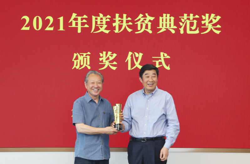 座談會期間,趙鵬向集團公司頒發(fā)了2021年度江蘇婦女兒童慈善杰出貢獻單位獎牌和第十一屆公益節(jié)-2021年度扶貧典范獎獎杯。