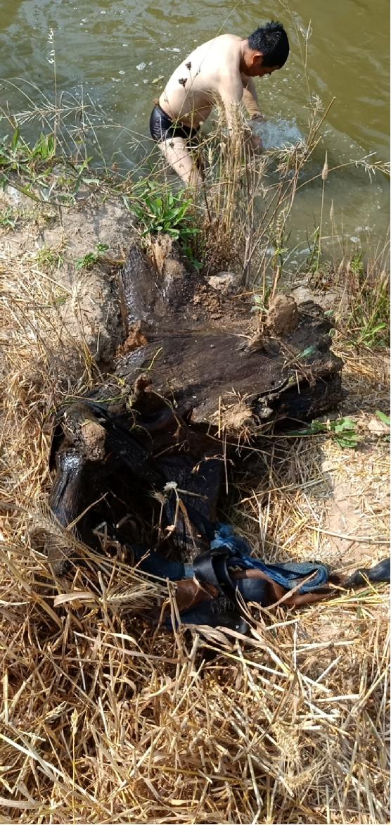 這時正好路過這里的27大隊職工,共產(chǎn)黨員周建明看到后,看著快要漫上田埂的水流,為了盡快解決問題,他想都沒想,立刻脫了外衣,毅然跳進一人多深的河里。他時而在河里反復摸索,時不時地悶下水去,摸出了一堆樹根和破衣爛衫。