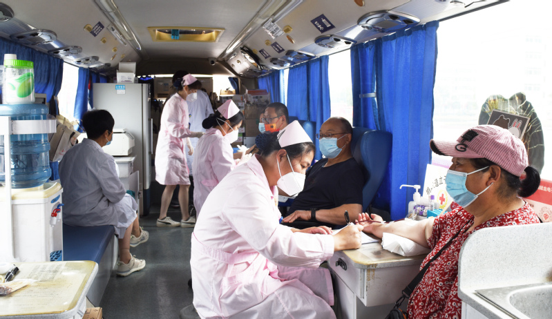 活動中,獻(xiàn)血人士在工作人員和志愿者的指引下,秩序井然,填表、體檢、獻(xiàn)血,以實際行動奉獻(xiàn)愛心。