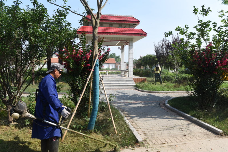 7月13日早上7時,在淮海路北側(cè)的路邊微型公園里,三名環(huán)衛(wèi)職工身負(fù)割草機(jī),伴隨著隆隆的機(jī)器轟鳴聲,他們就已經(jīng)在忙著清理草坪了。據(jù)了解,最近他們的工作重點是修整草坪灌木綠地,維持好綠化帶的整潔美觀形象。“經(jīng)過我們的勞動,每當(dāng)看到公共綠地上的草坪被修剪得整整齊齊,就覺得一天的勞作沒有白辛苦。”環(huán)衛(wèi)工葉師傅在稍作休息之余時說。在與他們交談中了解到,他們除了修剪草坪外,還有許多諸如種花栽樹、剪枝除草、澆水抗旱、挖塘施肥、河道保潔、垃圾清運等工作,哪里需要哪里上,他們一直以服從指揮而為整個農(nóng)場的美麗環(huán)境進(jìn)行精心地維護(hù)著。“每一項工作都要有人去打理,雖然環(huán)衛(wèi)工作很辛苦,但我既然選擇了這一行,就得把活干好,畢竟農(nóng)場美麗我光榮嘛!”葉師傅感言道。
