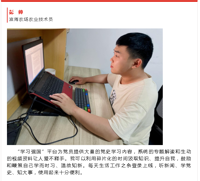 淮海各基層的黨員群眾堅(jiān)持每天打卡答題,積分你追我趕,大家的學(xué)習(xí)積極性高漲,實(shí)現(xiàn)了從“要我學(xué)”變“我要學(xué)”,從“被動(dòng)學(xué)”變“主動(dòng)學(xué)”的轉(zhuǎn)變。通過答題活動(dòng),進(jìn)一步加強(qiáng)了常態(tài)化制度化使用“學(xué)習(xí)強(qiáng)國”學(xué)習(xí)平臺(tái),在互學(xué)互比中實(shí)現(xiàn)互進(jìn)互促。圖為彭帥在射陽宣傳第8期上的學(xué)習(xí)感悟。
