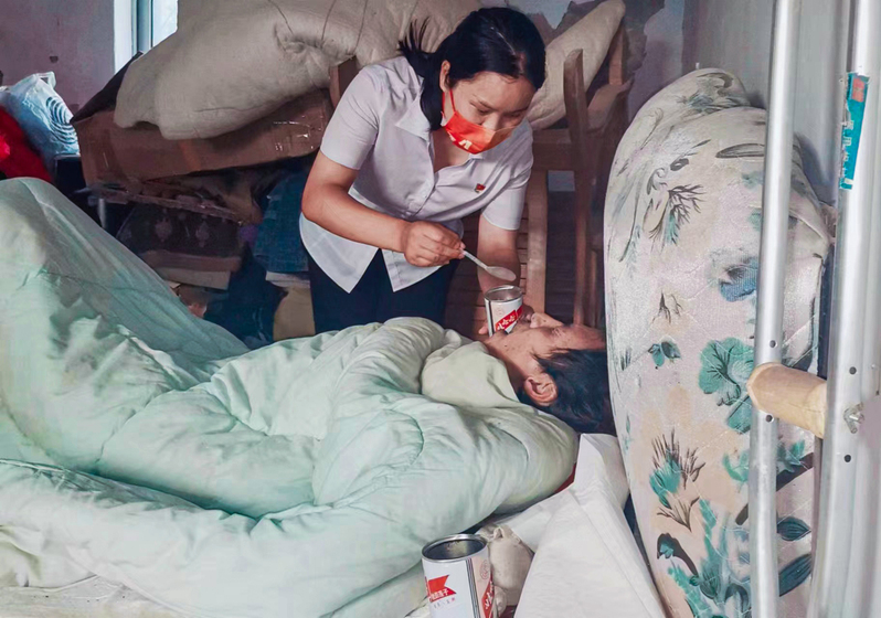 云臺(tái)農(nóng)場(chǎng)張圩居委會(huì)所轄小糧地居民點(diǎn),地理位置偏僻,是個(gè)只有5 戶人家的待撤并村莊。2022年8月9日,在“四個(gè)百”活動(dòng)日常走訪中,當(dāng)居委會(huì)走訪到小糧地居民點(diǎn)曹子牛家時(shí),發(fā)現(xiàn)昏暗的房間內(nèi)陣陣異味撲鼻而來。獨(dú)居在此的居民曹子牛,因起夜從床上不慎跌落在地,造成意識(shí)模糊講不出話來,大小便失禁,生活無法自理,成了一名“失能人”。作為居委會(huì)的幫扶對(duì)象,曹子牛一直是村子里讓人頭疼的“老大難”。年輕時(shí)候的曹子牛常年游手好閑、酗酒成性,喝多了就家暴妻子孩子,2010年、2018年,他先后兩次因?yàn)榫岂{摔傷,導(dǎo)致左腿粉碎性骨折、腰部受傷,妻子頭部嚴(yán)重受傷。厄運(yùn)接踵而至,讓妻兒無法忍耐,先后離開了家。由于他平日的言行,加之親屬能力有限無人愿意照料他,這給張圩居委會(huì)黨支部書記徐洪敏出了一道大難題,這燙手的山芋到手了就沒有丟掉的道理,徐書記沒有絲毫的猶豫,她立即成立了以她和居委會(huì)黨支部委員段萬江同志、小糧地轄區(qū)網(wǎng)格單元長(zhǎng)顧林國(guó)同志為成員的專項(xiàng)幫扶小組,第一時(shí)間為曹子牛送去了米、面、水、雞蛋、八寶粥、隔尿墊、尿不濕等食物和生活必需品,并看守照料曹子牛。照料這樣的失能人難度可想而知,而這位90后女書記愿意帶著大家干這種又臟又累伺候人的活,更是難以想象!面對(duì)滿屋的異味,她連眉也沒皺一下,不嫌臟、不怕累,帶領(lǐng)幫扶小組上前給曹子牛喂水、喂藥、喂飯,處理他的大小便,換洗床鋪,打掃房間,真正將群眾視為自己的親人去照料,去愛護(hù)。照料曹子牛生活的同時(shí),她也沒有停止為曹子牛爭(zhēng)取援助的腳步。她積極聯(lián)合轄區(qū)派出所和有關(guān)部門,想方設(shè)法聯(lián)系他的親屬,苦口婆心的勸說,幫助協(xié)調(diào)矛盾糾紛,積極申請(qǐng)民政救助,聯(lián)系海州區(qū)殘聯(lián)上門幫助他評(píng)殘,為曹子牛申請(qǐng)重殘補(bǔ)助,讓曹子牛真真切切地感受到黨的關(guān)懷。