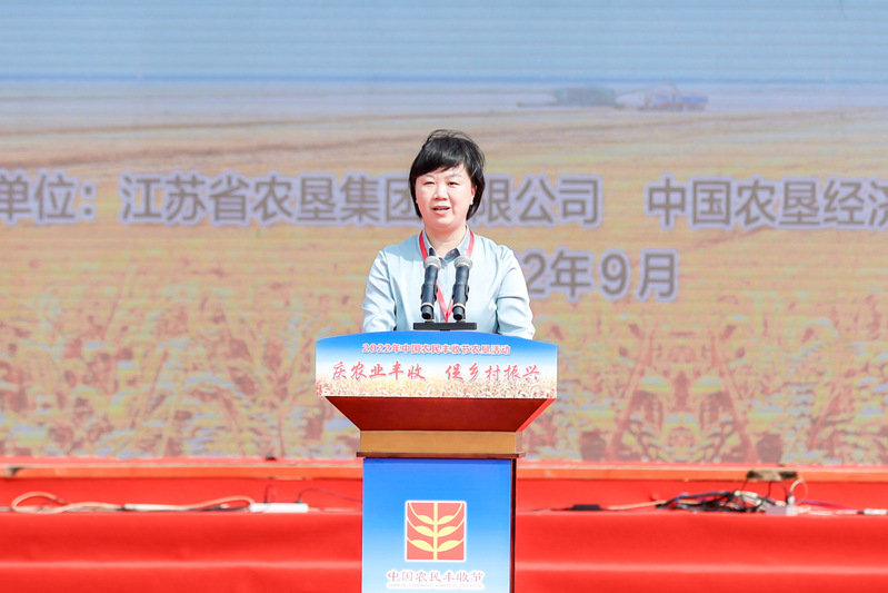 吳岡玉在致辭時(shí)說(shuō),近年來(lái),射陽(yáng)縣委縣政府與臨海農(nóng)場(chǎng)公司、新洋農(nóng)場(chǎng)公司、淮海農(nóng)場(chǎng)公司一起,認(rèn)真落實(shí)中央和省市關(guān)于農(nóng)墾改革發(fā)展部署要求,持續(xù)深化墾地融合發(fā)展,在推動(dòng)智慧農(nóng)業(yè)發(fā)展、做強(qiáng)“射陽(yáng)大米”品牌、建設(shè)美麗田園鄉(xiāng)村等方面成效顯著,江蘇農(nóng)墾麥芽入選2022年度江蘇省省長(zhǎng)質(zhì)量獎(jiǎng),縣農(nóng)業(yè)農(nóng)村局獲評(píng)全省夏糧生產(chǎn)貢獻(xiàn)突出單位。射陽(yáng)縣將以這次農(nóng)墾豐收活動(dòng)為新起點(diǎn),錨定創(chuàng)建國(guó)家級(jí)農(nóng)業(yè)現(xiàn)代化示范區(qū)和省級(jí)農(nóng)業(yè)現(xiàn)代化先行區(qū)目標(biāo),聯(lián)合省農(nóng)墾集團(tuán)的資源、技術(shù)、市場(chǎng)等優(yōu)勢(shì),推動(dòng)駐射陽(yáng)各農(nóng)場(chǎng)與縣屬各國(guó)有企業(yè)、友鄰鎮(zhèn)區(qū)一道,在推進(jìn)種業(yè)振興和高標(biāo)準(zhǔn)農(nóng)田建設(shè)方面共同發(fā)力,積極推進(jìn)“三品一標(biāo)”創(chuàng)建,合力打造江蘇東部沿海大糧倉(cāng)、生態(tài)糧食大超市、鄉(xiāng)村休閑大花園,共同繪就新時(shí)代魚(yú)米之鄉(xiāng)的美麗畫(huà)卷。