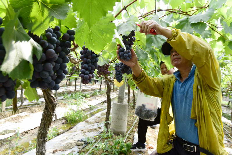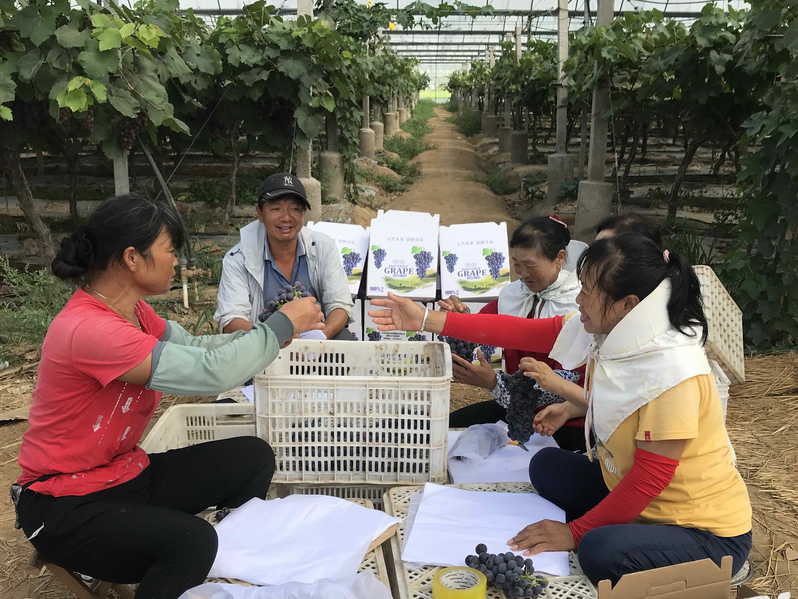 據(jù)了解,園內種植品種“夏黑”和“陽光玫瑰”等葡萄品種,畝產量可達4000斤上下。特別是其統(tǒng)一施用農家肥、無公害防蟲防病、反光膜覆蓋、科學滴灌、疏果等措施,輔助于智能化的通風調溫、噴淋調水和調節(jié)光照設施的開展,合理調節(jié)土壤水分,降低田間溫、濕度,也減輕各類病蟲害的侵襲,讓葡萄按規(guī)定設計的要求進行掛果,確保種出安全、優(yōu)質的葡萄提供給消費者。