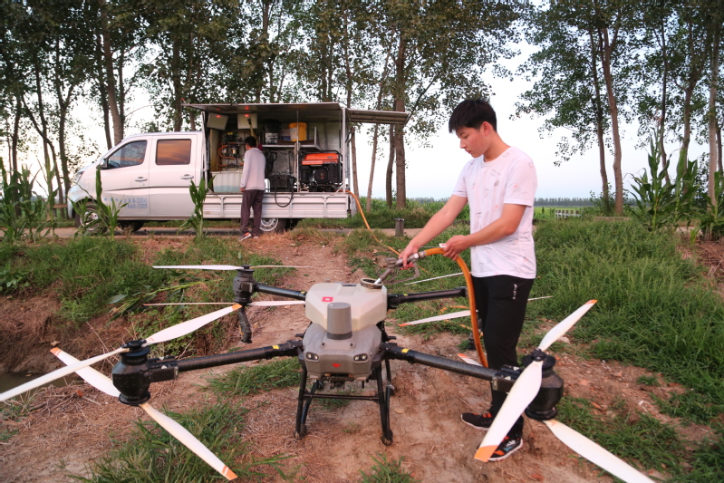 眼下正是水稻產(chǎn)量形成的關(guān)鍵時期,也是病蟲害高發(fā)時期。連日來,崗埠分公司組織農(nóng)業(yè)科、生產(chǎn)區(qū)農(nóng)技人員和大隊管理員,著眼紋枯病、稻曲病、稻縱卷葉螟、稻飛虱等高發(fā)病蟲害,深入田間展開排查統(tǒng)計,分類施策,科學(xué)開展肥水管理和綠色防控,抓好4.5萬畝水稻的穗期管理工作。“無人機夜間對水稻進(jìn)行病蟲害綜合防治作業(yè),避開白天高溫作業(yè)風(fēng)險,大大提升作業(yè)效率,一臺無人機每小時可噴灑150畝,有力加速防治進(jìn)程?!睄彶悍止巨r(nóng)業(yè)中心負(fù)責(zé)人表示,無人機飛防不僅作業(yè)效率快,防治效果好,減少農(nóng)藥使用量,降低農(nóng)業(yè)生產(chǎn)成本,且能大大降低勞動強度,一舉多得。當(dāng)前正是穗期水稻病蟲害綜合防治關(guān)鍵節(jié)點,分公司共組織無人機40余臺,采取夜間操作,確保在規(guī)定防治時間內(nèi)完成防治任務(wù),為秋糧豐收打好基礎(chǔ)。