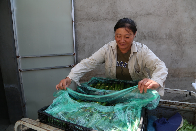 “劉大姐,像這樣的次果別放在筐子里,這是要打包送到保真超市的,咱得確保果型質(zhì)量呀!”9月4日上午,在崗埠富民農(nóng)業(yè)科技園32號大棚門前,一筐筐剛摘下的水果黃瓜翠綠欲滴,工作人員崔士平正在仔細整理挑選水果黃瓜,準備裝車送往連云港市區(qū)的保真超市。