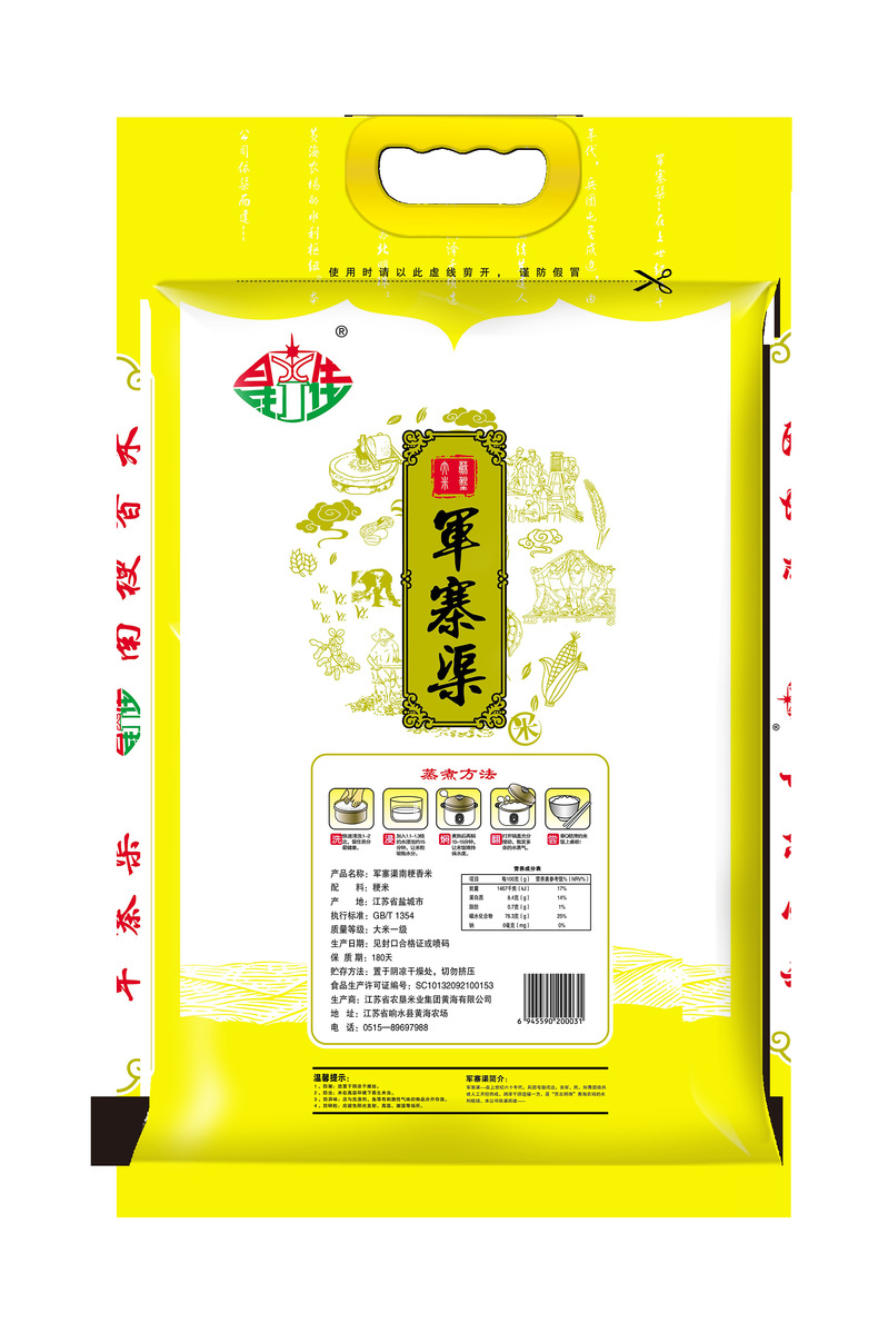“軍寨渠”商標(biāo)于2018年注冊,商品使用類別為第30、31類。圖案里的水果造型寓意“農(nóng)副產(chǎn)品”;“綠色”寓意與健康同伴相融,生生不息;“軍寨渠”是黃海農(nóng)場母親河,一直哺育著農(nóng)場遼闊的土地。上世紀60年代末開挖軍寨渠時,農(nóng)場職工和知青幾乎都參與到工程建設(shè)中,留下了關(guān)于軍寨渠建設(shè)的深刻記憶。以此為商標(biāo),也是紀念黃海這段“墾荒史”,傳承墾荒文化。