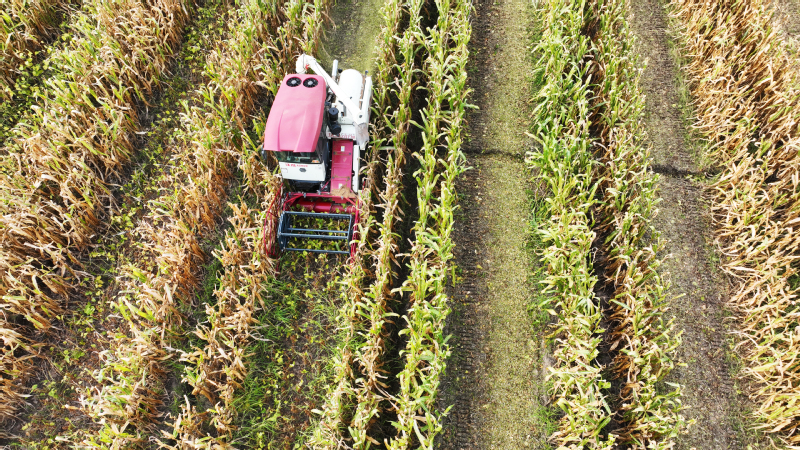 今年江蘇農(nóng)墾大豆玉米帶狀復(fù)合種植面積達(dá)12萬畝,目前大豆玉米已經(jīng)陸續(xù)成熟。圖為蘇墾農(nóng)發(fā)東辛分公司農(nóng)機(jī)在田間收割大豆。