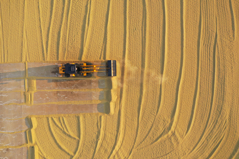 金秋十月,豐收季節(jié)。高空俯瞰寶應(yīng)湖農(nóng)場(chǎng),田間地頭,收割機(jī)來回穿梭,曬糧場(chǎng),稻谷飄香,處處呈現(xiàn)如畫般的豐收美景。水稻收割完之后,旋耕機(jī)、播種機(jī)隨即“登場(chǎng)”,將一粒粒麥種播撒進(jìn)田間,為來年豐收打下基礎(chǔ)。