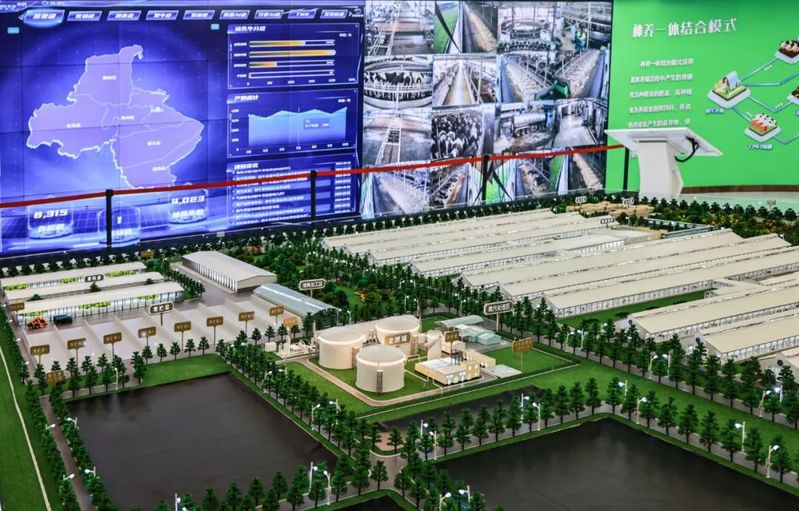生態(tài)化發(fā)展加速轉(zhuǎn)型。牧場智慧生態(tài)系統(tǒng)的污水循環(huán)管理設(shè)備包含牧場污水管路3D圖與污水監(jiān)測點位信息,實時監(jiān)測牧場污水指標(biāo),并將數(shù)據(jù)同步上傳至環(huán)保部門,確保牧場水質(zhì)監(jiān)管到位。沼氣發(fā)電系統(tǒng)將標(biāo)準(zhǔn)化工藝處理糞污產(chǎn)生的沼氣用于發(fā)電,沼液利用后的沼渣作為牛床墊料的生產(chǎn)原料,不僅成本低,還有效降低了養(yǎng)殖風(fēng)險。同時在場區(qū)配備廢氣檢測設(shè)備監(jiān)測養(yǎng)殖氣體環(huán)境,配備消防監(jiān)控設(shè)備監(jiān)測飼草區(qū)與沼氣發(fā)電區(qū)域煙火狀況。智能生態(tài)系統(tǒng)采取糞污固體發(fā)酵、沼氣烘干回床、沼液還田方式,實現(xiàn)“變廢為寶”。對牧場糞污發(fā)酵后的液位進(jìn)行采集,經(jīng)過無害化處理后的沼液通過預(yù)設(shè)專用管道,在卷盤式噴灌機(jī)的運(yùn)轉(zhuǎn)下自動噴灑在專屬消納用地的田間作物上,形成種養(yǎng)一體循環(huán),有效提高了糞污綜合利用水平。