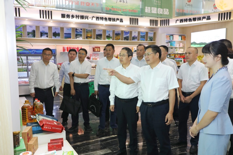 調(diào)研期間,吳本輝一行先后到廣西農(nóng)墾旗下邕之泰公司、永新畜牧集團(tuán)良圻獸醫(yī)技術(shù)中心、明陽農(nóng)場(chǎng)公司現(xiàn)代農(nóng)業(yè)基地、非糧生物質(zhì)能技術(shù)全國重點(diǎn)實(shí)驗(yàn)室、金光農(nóng)場(chǎng)公司現(xiàn)代農(nóng)業(yè)基地、桂墾良品展示展銷中心、廣西農(nóng)墾展示館等地考察學(xué)習(xí)。在邕之泰公司,吳本輝對(duì)廣西農(nóng)墾集團(tuán)通過混改并購延伸生豬產(chǎn)業(yè)鏈,從無到有、從有到強(qiáng)的發(fā)展模式給予高度評(píng)價(jià);在永新畜牧集團(tuán),雙方就生豬養(yǎng)殖模式、科技研發(fā)、成本壓降、環(huán)保治理等方面進(jìn)行了深入交流;在廣西農(nóng)墾明陽片區(qū)、金光片區(qū)現(xiàn)代農(nóng)業(yè)基地,吳本輝一行考察調(diào)研了特色現(xiàn)代農(nóng)業(yè)和設(shè)施農(nóng)業(yè)發(fā)展情況,詳細(xì)聽取了廣西農(nóng)墾特色農(nóng)業(yè)發(fā)展、農(nóng)產(chǎn)品和食品加工、市場(chǎng)營銷等方面的經(jīng)驗(yàn)做法;在非糧生物質(zhì)能技術(shù)全國重點(diǎn)實(shí)驗(yàn)室和廣西化工院,吳本輝對(duì)廣西農(nóng)墾堅(jiān)持科技創(chuàng)新賦能、深化科技人才隊(duì)伍建設(shè)、加速科技成果研發(fā)轉(zhuǎn)化等方面取得的成效給予了高度評(píng)價(jià)。