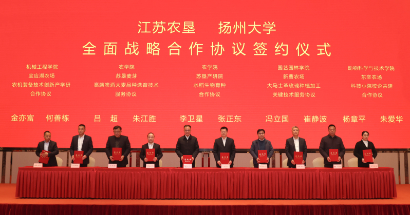 2月25日下午,省農(nóng)墾集團(tuán)與揚(yáng)州大學(xué)全面戰(zhàn)略合作協(xié)議簽約儀式在南京舉行。集團(tuán)黨委書記、董事長(zhǎng)吳本輝致辭,揚(yáng)州大學(xué)黨委書記丁建寧出席并講話。集團(tuán)黨委副書記、總經(jīng)理姜建友,黨委副書記朱浩出席簽約儀式,黨委委員、副總經(jīng)理王立新主持簽約儀式。揚(yáng)州大學(xué)黨委副書記、校長(zhǎng)劉巧泉,黨委常委、副校長(zhǎng)趙文明,黨委常委、副校長(zhǎng)蔡穎蔚出席簽約儀式。