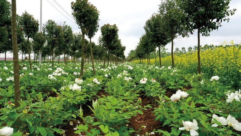 為了讓“綠葉子”變成“金票子”,黃海農(nóng)場科學利用林間隙地,大力發(fā)展林下經(jīng)濟,在一排排女貞樹下,油用牡丹茁壯成長?!安捎门懞陀陀媚档ち珠g套種模式,能相互取長補短,實現(xiàn)提產(chǎn)量、增效益、保生態(tài)等多贏目標?!鞭r(nóng)場林業(yè)中心主任王虎義說。