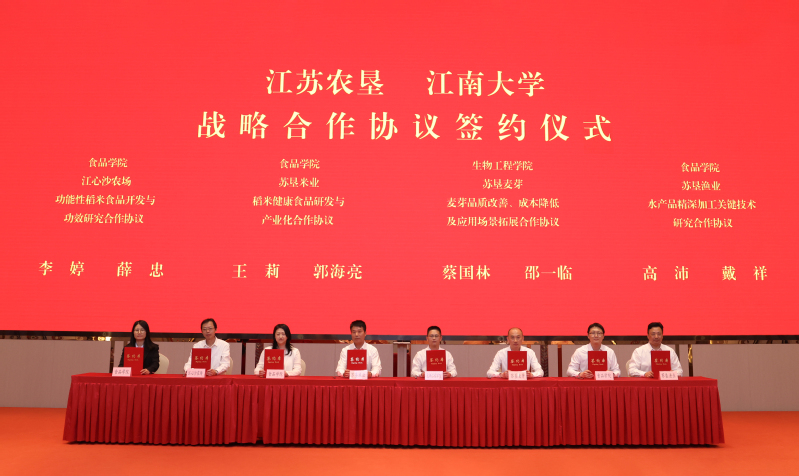集團(tuán)公司總經(jīng)濟(jì)師、相關(guān)部門負(fù)責(zé)人,江心沙農(nóng)場、蘇墾農(nóng)發(fā)、蘇墾漁業(yè)等單位負(fù)責(zé)人,江南大學(xué)相關(guān)學(xué)院及部門負(fù)責(zé)人、專家教授等參加簽約儀式。