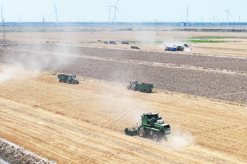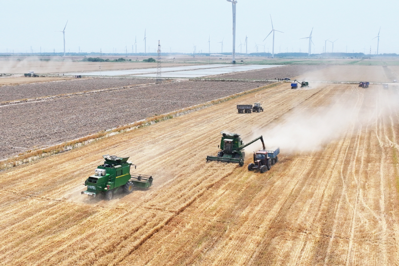 2025年5月29日,鹽城射陽縣江蘇農(nóng)墾臨海農(nóng)場順泰生產(chǎn)區(qū)麥浪涌動,大型聯(lián)合收割機(jī)轟鳴作業(yè),率先拉開當(dāng)?shù)叵氖招←溞蚰?。近年來,農(nóng)場黨委以墾地合作推動發(fā)展,通過技術(shù)賦能與鹽堿地改良,昔日鹽堿地蛻變?yōu)椤皣嵓Z田”,為鄉(xiāng)村振興打造國有農(nóng)業(yè)新樣板。