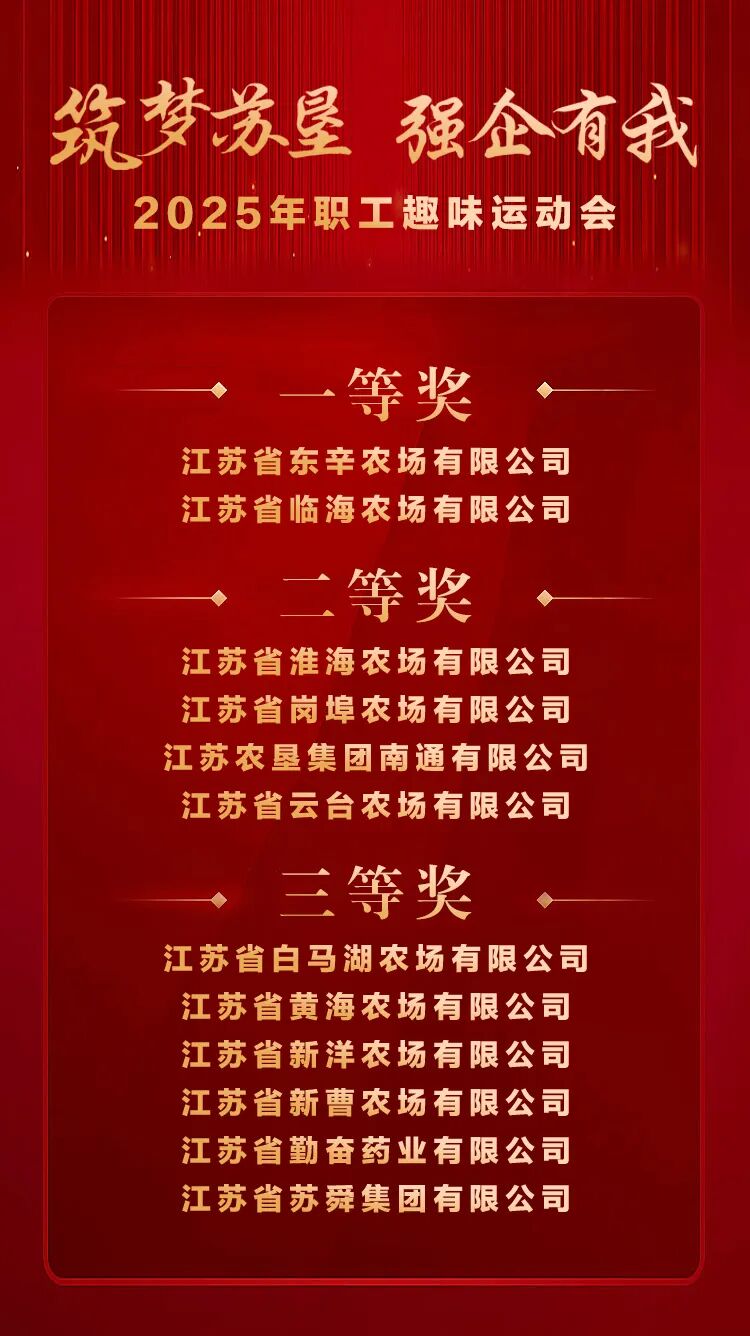 燃動金秋,趣享運(yùn)動。10月19日,江蘇農(nóng)墾2025年“筑夢蘇墾,強(qiáng)企有我”職工趣味運(yùn)動會在寧成功舉辦。集團(tuán)黨委書記、董事長吳本輝,黨委副書記朱浩,副總經(jīng)理劉耀武,黨委委員、副總經(jīng)理王立新,黨委委員、總會計(jì)師殷紅,黨委委員、副總經(jīng)理劉衛(wèi)華、鄧國新出席活動。