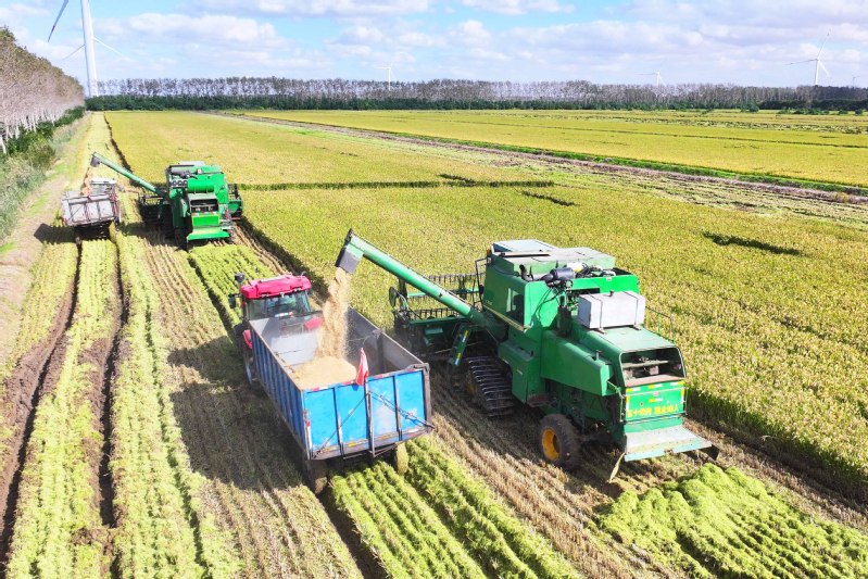 10月22日,在江蘇省鹽城市射陽縣,晴日之下的江蘇農(nóng)墾臨海農(nóng)場,萬畝稻田金黃如濤。多臺履帶式收割機(jī)在田間往來穿梭,將顆粒飽滿的稻谷源源不斷送入運(yùn)糧車,一幅現(xiàn)代農(nóng)業(yè)搶收的繁忙圖景生動鋪展。受前期陰雨天氣影響,農(nóng)場以“搶”為令,啟用履帶式收割機(jī)破解濕陷難題,既保障耕地平整,又為后續(xù)播種奠定苗齊苗壯基礎(chǔ)。同時整合農(nóng)機(jī)與烘干資源,構(gòu)建“收割一運(yùn)輸一烘干”一體化閉環(huán),全力推進(jìn)8萬余畝水稻搶收,為筑牢糧食安全屏障爭分奪秒。