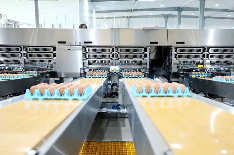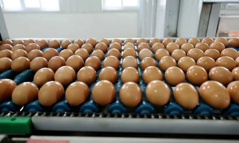 雞蛋的“出場儀式”同樣充滿科技感。它們從雞舍“出發(fā)”,經(jīng)中央集蛋流水線直達蛋庫,進入處理能力達每小時8萬枚的全自動分選線,依次完成清洗、烘干、紫外線殺菌、裂紋檢測、稱重分級、噴碼溯源……15道工序一氣呵成。不合格的蛋會被自動剔除,合格的蛋則會被噴上獨一無二的“生日檔案”編碼,實現(xiàn)從養(yǎng)殖到餐桌的全程可追溯。