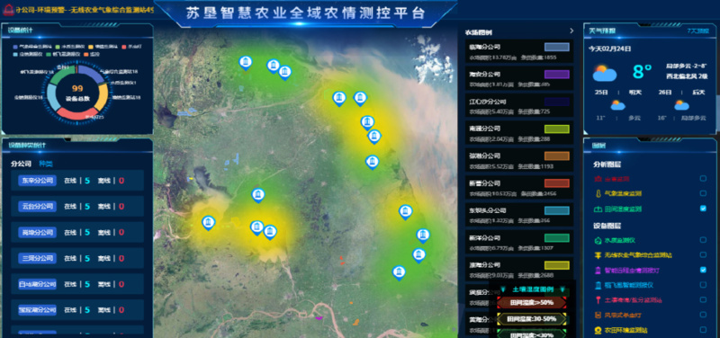 蘇墾農(nóng)發(fā)以保障糧食安全為核心,堅(jiān)決貫徹落實(shí)集團(tuán)戰(zhàn)略部署,建立黨委抓總、科技信息部統(tǒng)籌推進(jìn)的工作機(jī)制,集成應(yīng)用低空農(nóng)業(yè)、無人化裝備和人工智能技術(shù),構(gòu)建智慧農(nóng)業(yè)“一張圖”“一片云”“一張網(wǎng)”基礎(chǔ)平臺(tái),開發(fā)應(yīng)用無人值守巡田系統(tǒng)、全域“四情”監(jiān)測(cè)系統(tǒng)和智慧灌溉系統(tǒng),推廣精準(zhǔn)變量施肥、衛(wèi)星平地、北斗導(dǎo)航輔助駕駛等先進(jìn)裝備,多維度提升農(nóng)業(yè)生產(chǎn)效率與管理水平,形成可復(fù)制、可推廣的江蘇農(nóng)墾智慧農(nóng)業(yè)集成解決方案。