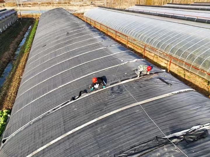 “把保溫膜拉得緊一些,主要是接縫處要全部覆蓋,否則影響保溫效果。”12月1日,在園區(qū)的12號溫室大棚,工作人員楊維祥和竇雙雙正在修復破損的外保溫被。“百合花遇到寒冷天氣也會‘感冒’,必須營造良好的室內(nèi)溫度?!睏罹S祥一邊固定保溫棉被一邊介紹,保溫棉被不僅能夠減少熱量的散失,還能保持土壤濕度,為大棚百合花創(chuàng)造相對穩(wěn)定的生長環(huán)境。為保證保溫效果,他們還特別注意保溫棉被的覆蓋密度和固定方式,確保大棚里的百合花都能平穩(wěn)抵御低溫。