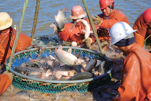 隨著2026年元旦臨近,水產(chǎn)市場需求量逐漸增大,江蘇省連云港市海州區(qū)積極做好鮮魚捕撈銷售工作,切實(shí)滿足節(jié)日市場需求。圖為海州區(qū)的江蘇農(nóng)墾崗埠農(nóng)場加緊拉網(wǎng)捕撈鯉魚、花鰱、白鰱等各種鮮魚,準(zhǔn)備供應(yīng)云南昆明、山東濟(jì)寧等多地市場?! ⌒煨l(wèi) 攝