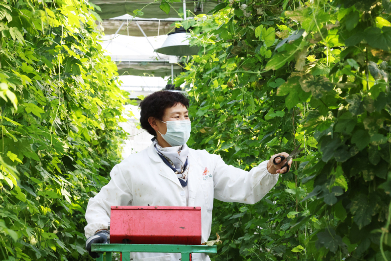 2月17日,云臺(tái)農(nóng)場(chǎng)興墾科技員工在整理啤酒花藤蔓(上圖)。2月17日,云臺(tái)農(nóng)場(chǎng)興墾科技工作人員在整理蝴蝶蘭育苗(下圖)。