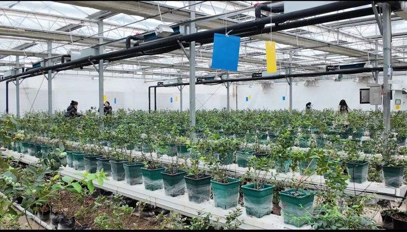 3月里春寒料峭,蘇墾林業(yè)藍(lán)莓基地內(nèi)卻暖意融融、果香四溢。一顆顆裹著天然白霜的藍(lán)莓如藍(lán)寶石般綴滿枝頭,在智能溫室的調(diào)控下提前成熟,迎來(lái)今春首批采摘客。