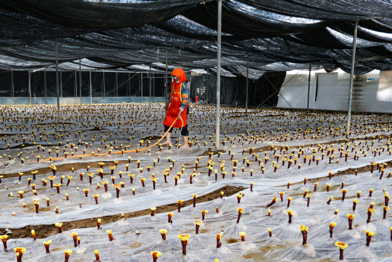 特色種植拓展農(nóng)業(yè)多元價(jià)值。食用菌種植基地內(nèi),一朵朵平菇破袋而出。通過(guò)標(biāo)準(zhǔn)化菌棒管理和環(huán)境控制技術(shù),一個(gè)菌棒能連續(xù)收四到五茬,每茬產(chǎn)量約600斤,產(chǎn)品主要供應(yīng)本地商超和社群團(tuán)購(gòu)渠道。靈芝種植基地則探索高附加值農(nóng)業(yè)發(fā)展路徑。采用仿野生栽培技術(shù)結(jié)合智能溫控系統(tǒng),產(chǎn)出的靈芝孢子粉破壁率達(dá)99.6%,有效成分含量遠(yuǎn)超行業(yè)標(biāo)準(zhǔn)。云水灣景區(qū)創(chuàng)新引入的盆栽藍(lán)莓項(xiàng)目。600余盆盆栽藍(lán)莓錯(cuò)落有致,大棚內(nèi)的水肥一體化設(shè)備通過(guò)滴箭將水溶肥精準(zhǔn)輸送至每株根系,技術(shù)人員將基質(zhì)pH值穩(wěn)定在最適宜藍(lán)莓生長(zhǎng)的4.5-5.5區(qū)間,游客既可到景區(qū)現(xiàn)摘現(xiàn)嘗,也能買回家放陽(yáng)臺(tái)養(yǎng)護(hù),讓“盆景”變“果盤(pán)”。