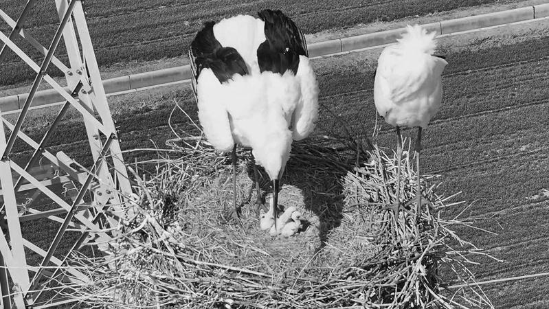 東方白鸛孵化出三只寶寶 陳冬平、王忠民供圖