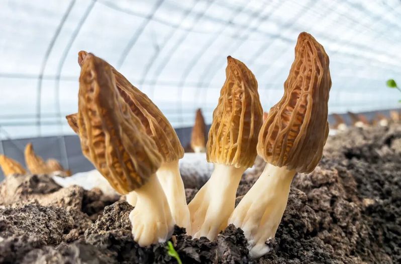 走進(jìn)基地東側(cè)羊肚菌專屬大棚,隔絕了室外微涼的春風(fēng),棚內(nèi)暖意融融,濃郁的菌香撲面而來,格外沁人心脾。放眼望去,一朵朵褐色的羊肚菌頂著獨(dú)特的蜂窩狀“小傘”,錯落有致地扎根在濕潤的菌床上,個個肉質(zhì)肥厚、形態(tài)飽滿、色澤鮮亮,密密麻麻鋪滿整片菌壟,長勢格外喜人,滿眼都是生機(jī)勃勃的豐收景象。