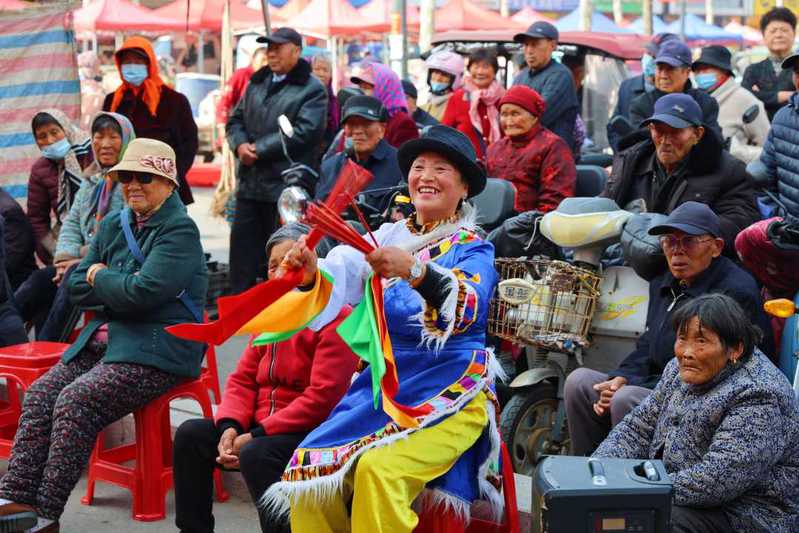 3月26日,江蘇省連云港市海州區(qū)江蘇農(nóng)墾崗埠農(nóng)場鄉(xiāng)村大集,民俗表演吸引路人駐足。